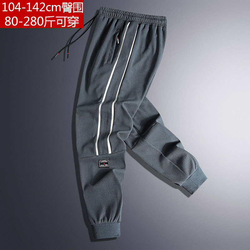 太って大きいサイズの男性の運動のズボンのワッフルの生地の春秋のゆったりしている太った人の太った人は腰の衛のズボンを緩めます。