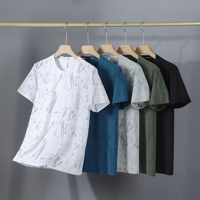 涼感绢糸白半袖tシャツ男夏氷糸男士レジャースポーツ半袖丸襟上着潮