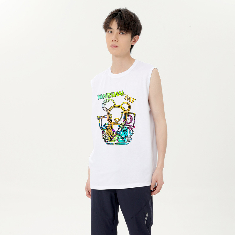 夏の新型プリントの大きいサイズのベストの男性の日系のレジャー運動のゆったりした半袖のtシャツの袖なしのベストはゆったりしています。