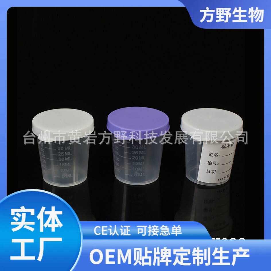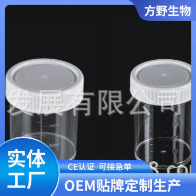 実験室消耗品透明使い捨てプラスチック螺旋式スケール付き標本瓶60ml fi008
