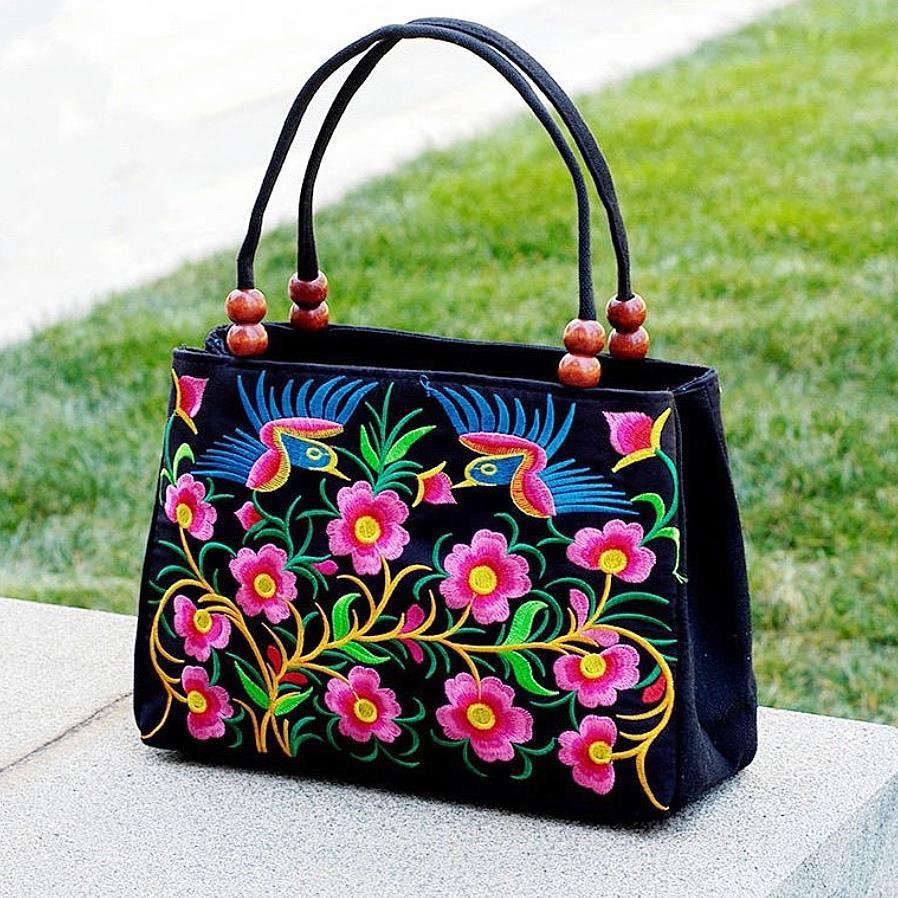 2024新型中高年女性バッグ民族風刺繍バッグ刺繍キャンバスバッグ中年女性ハンドバッグ