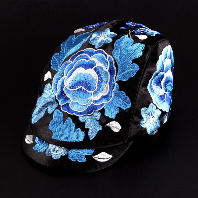 さまざまなオプションのファッショナブルな刺繍入り帽子、サテンのひさし付きキャップ、新しい中国風のエスニックスタイルの野球帽、女性用の刺繍入り帽子
