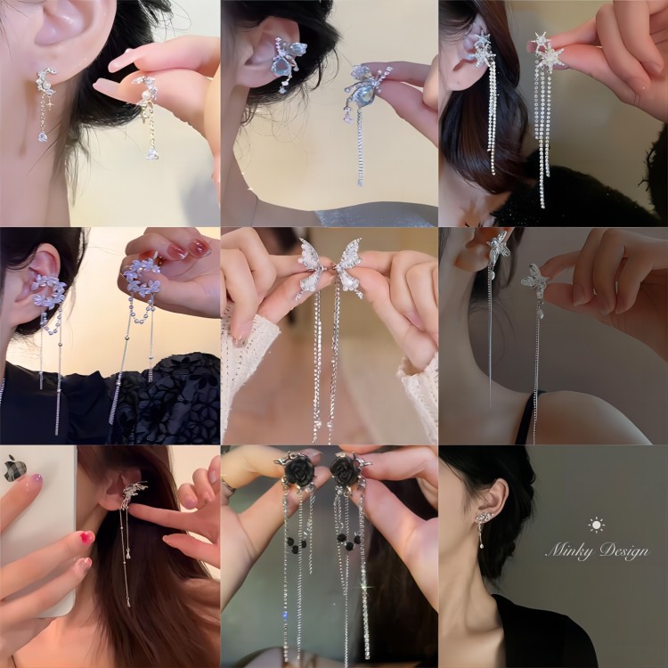 2025年新作 蝶々フリンジイヤリング レディース INS風 清新 高級感 気質 多彩なスタイル フリンジイヤリング 女性用