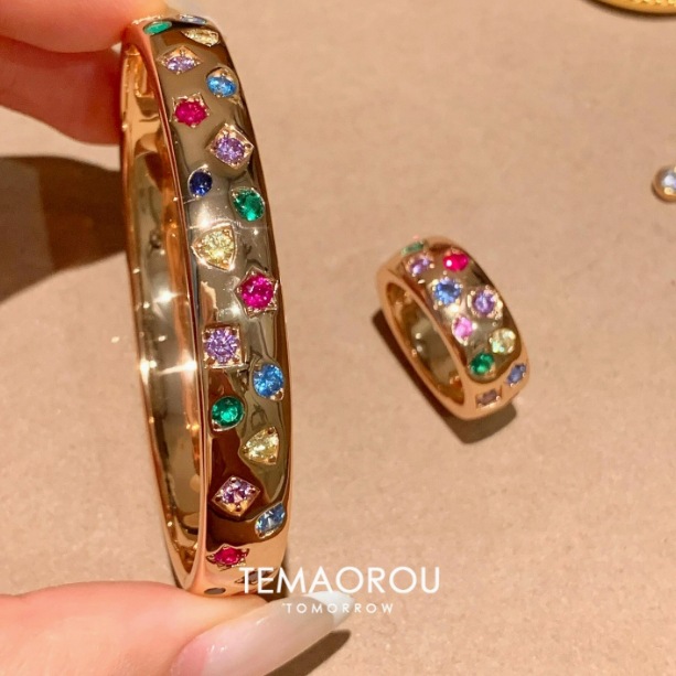 bigbang Quan Zhilongと同じスタイルの交換用ブレスレットリング、ハイエンドで多用途な象嵌のカラフルな輝くダイヤモンドのハンドアクセサリー