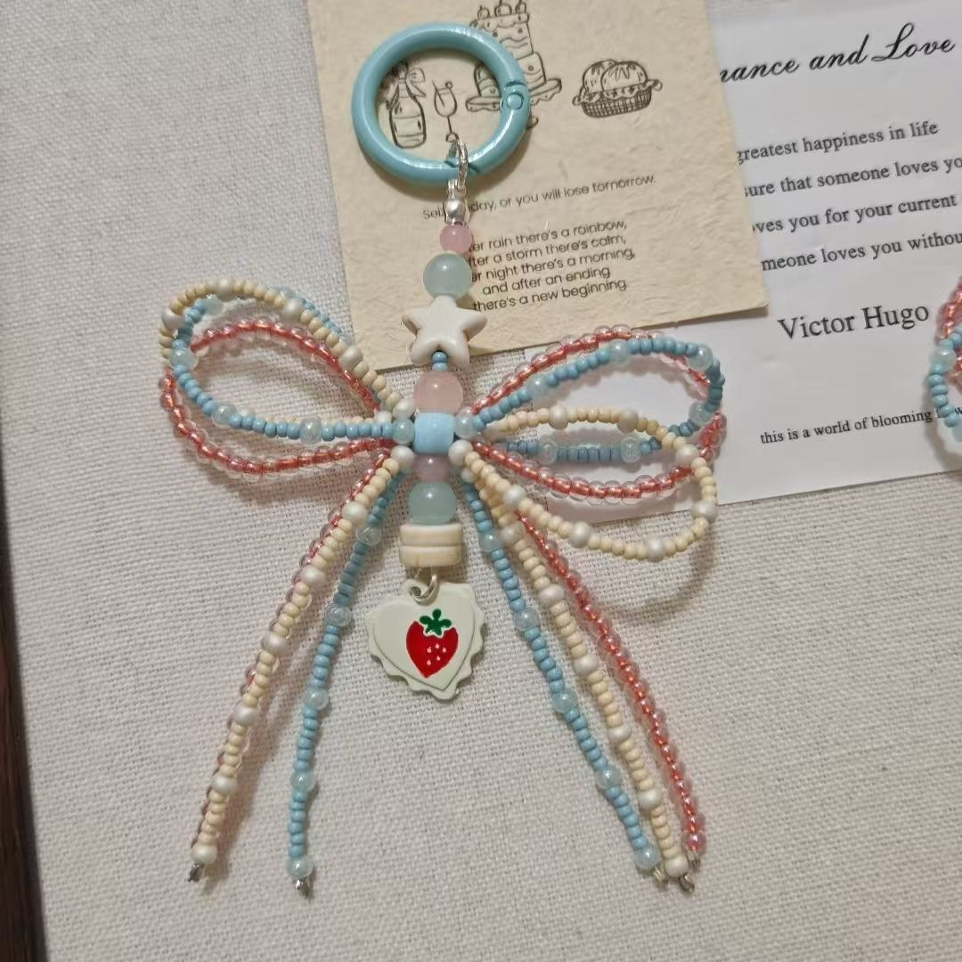 韓国インピンクブルーパールリボンバッグペンダントキュートで甘い新しい携帯電話チェーン携帯電話ケースユニバーサルハンギングチェーン