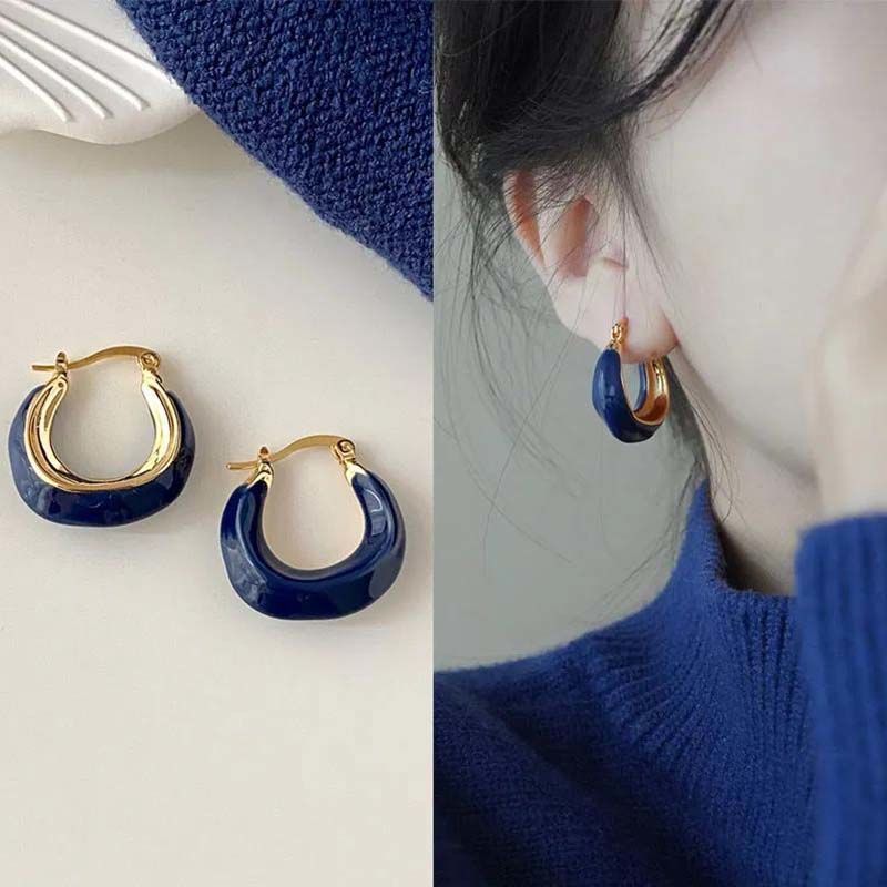 韓国の新型フレンチレトロなラインブルーのイヤリングのデザイン感があります。春夏のイヤリングは2022年に新しいです。