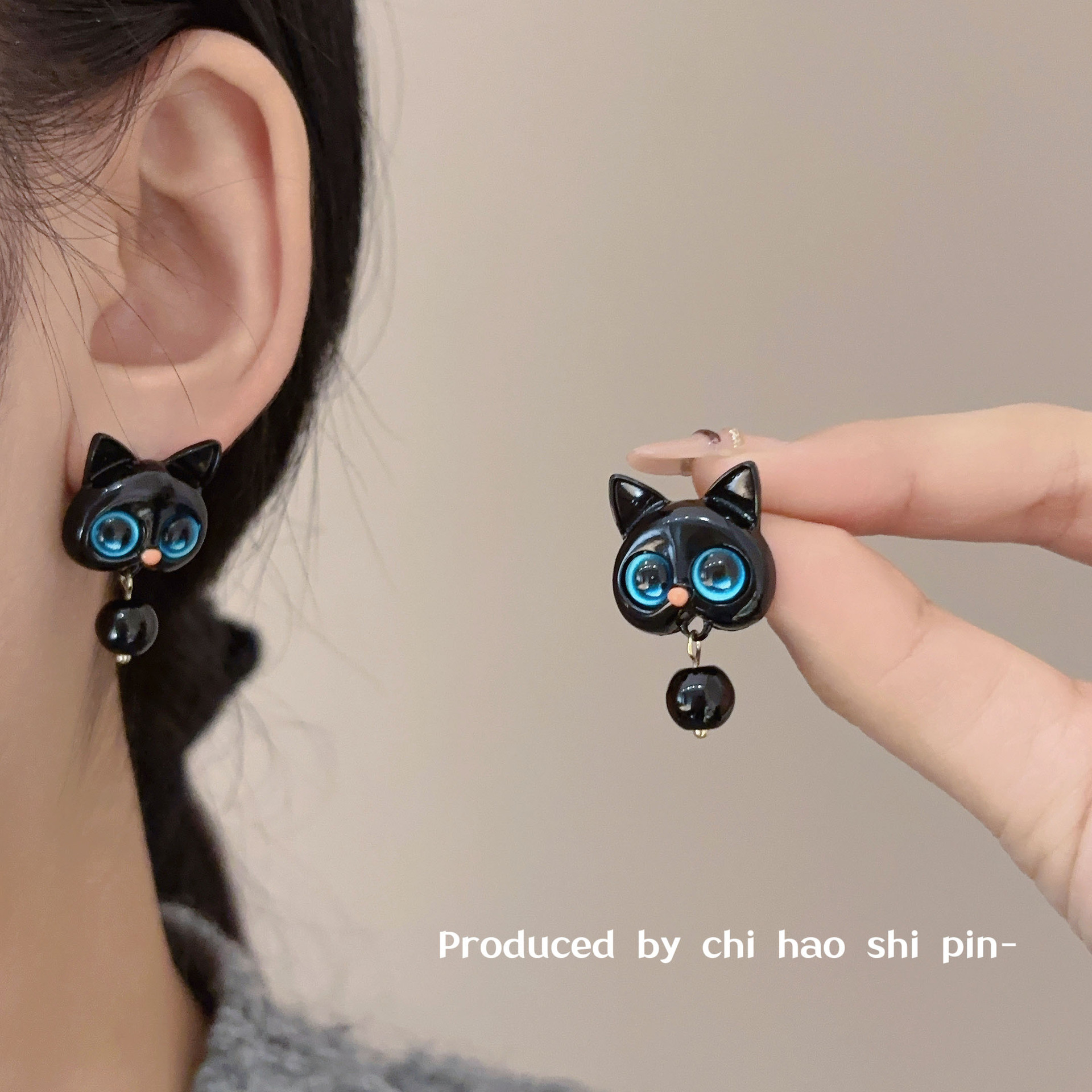 ニャスターの黒い猫の青い目のイヤリングの女性の大衆のデザインの高級感のファッションのかわいい百合の耳飾り