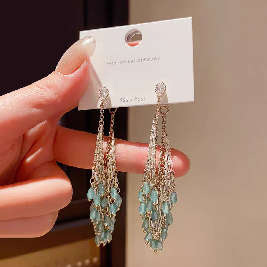 レトロボヘミアンエスニックスタイルタッセルイヤリング女性用クリスタルハイエンドニッチ誇張ロングフェイススリミングイヤリング