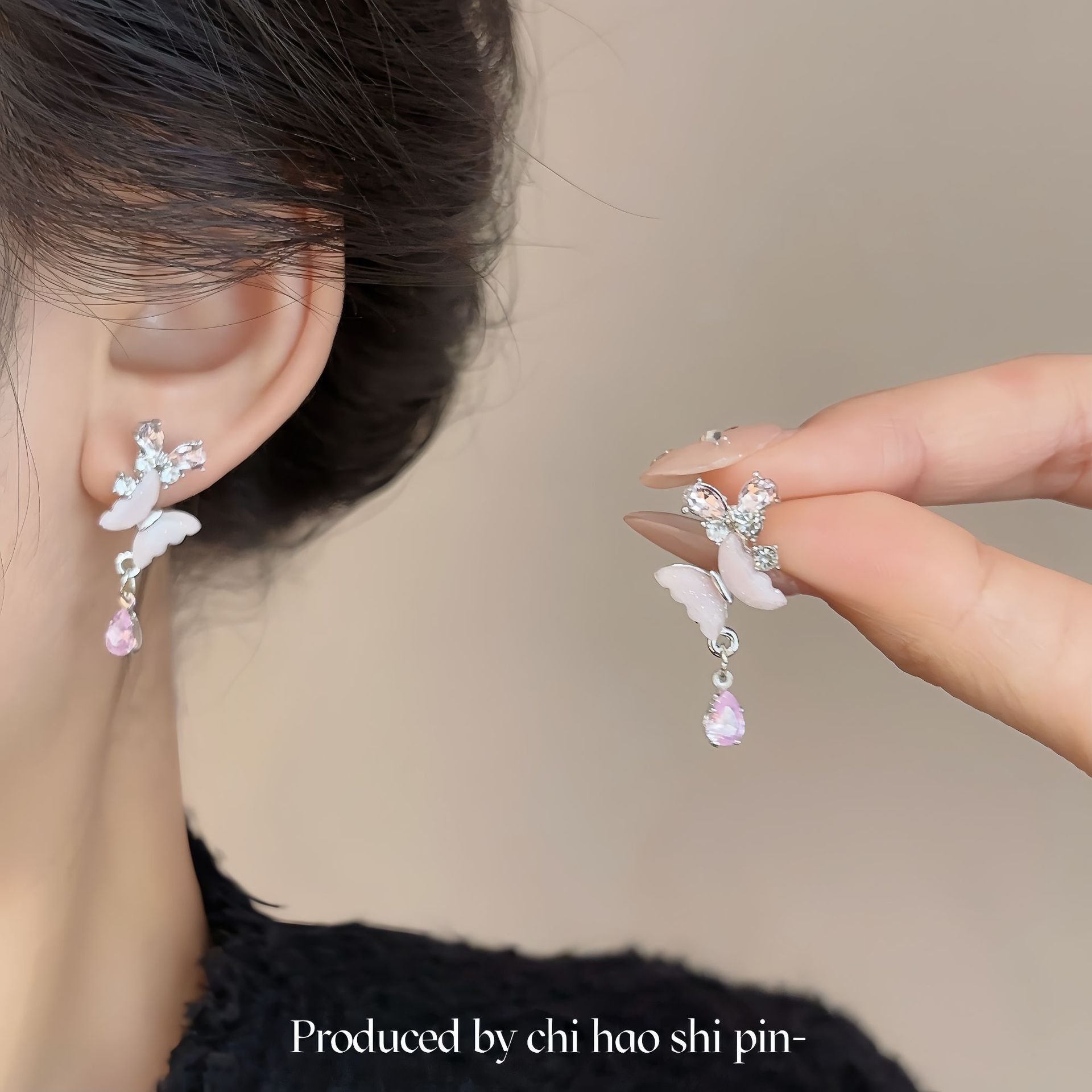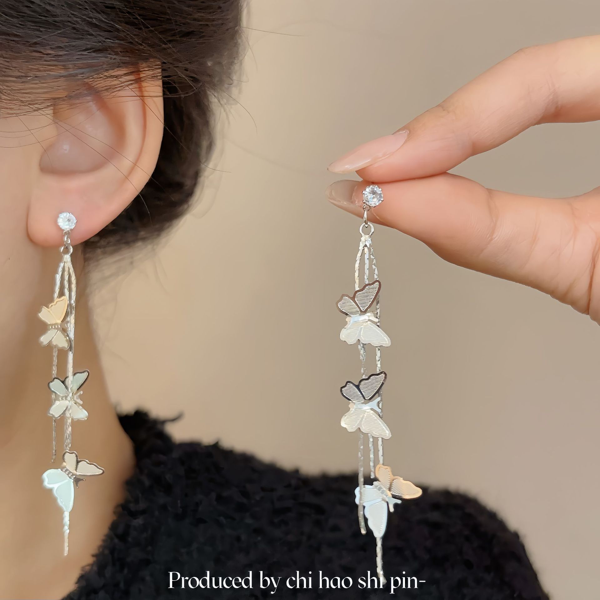 ガーリーファンタジーバタフライタッセルイヤリング、甘くてユニークなハイエンドファッションイヤリング、ニッチなスーパーフェアリーイヤリング