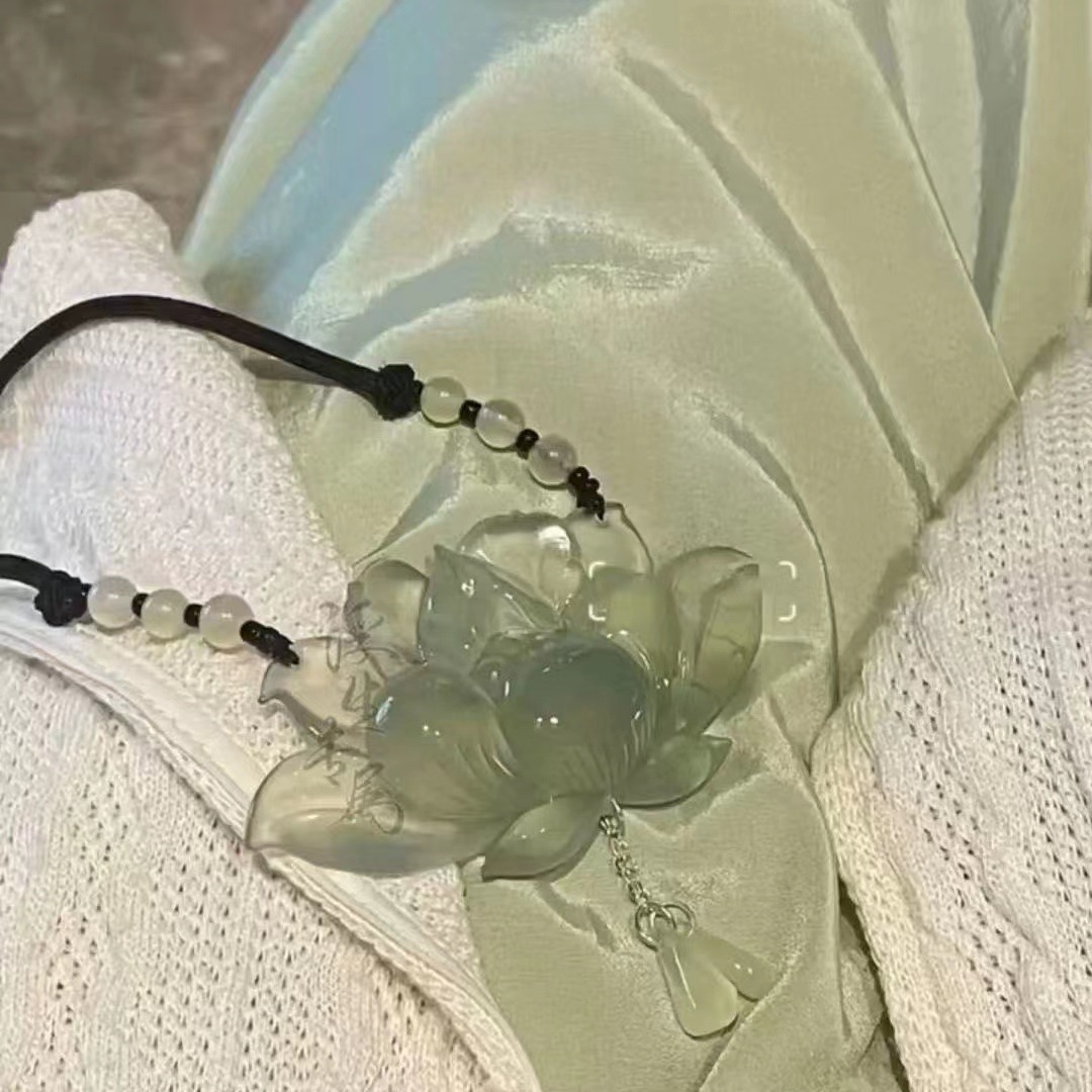 韓国の新型の透き通った蓮の花のネックレスは玉の蓮のペンダントの漢服のアクセサリーの女性の大衆のシンプルなネックレスを誇張しています。