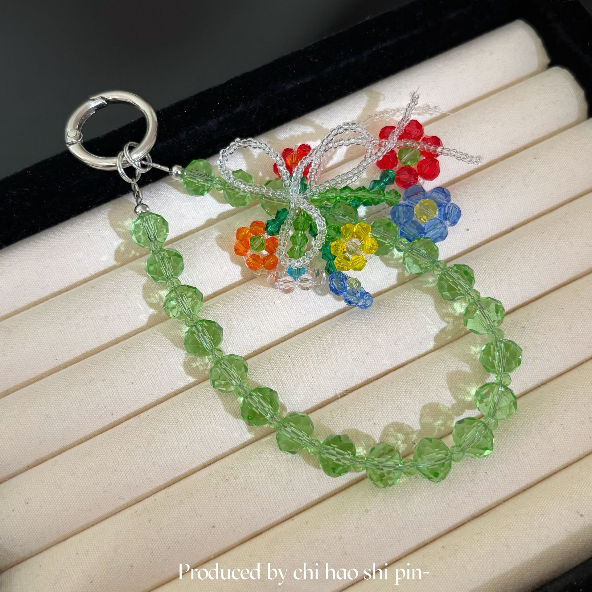 春からの手紙 ~ 小清新緑色水晶ビーズ蝶結び花ストラップ