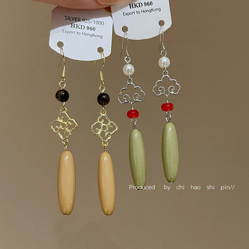オリジナル新中国風祥雲水滴真珠長型耳飾り小衆気質高級復古風耳飾り2024新型