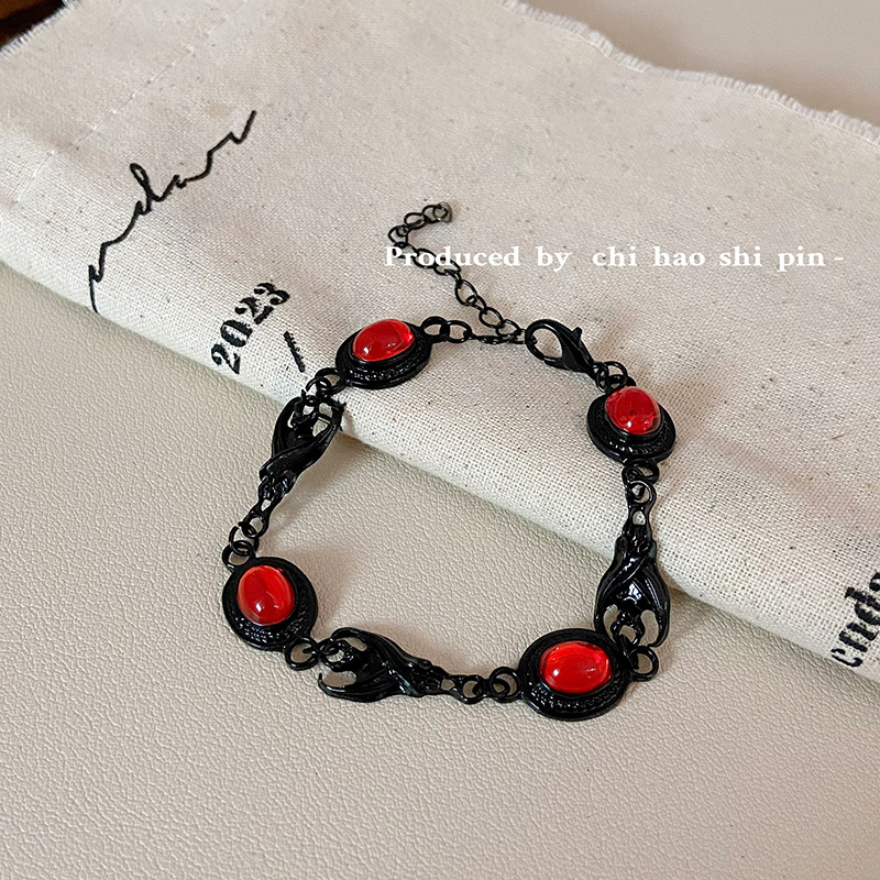 暗黒パンク風黒紅衝突色ブレスレット小衆デザイン高級感個性甘酷ギャル手飾り2024新作