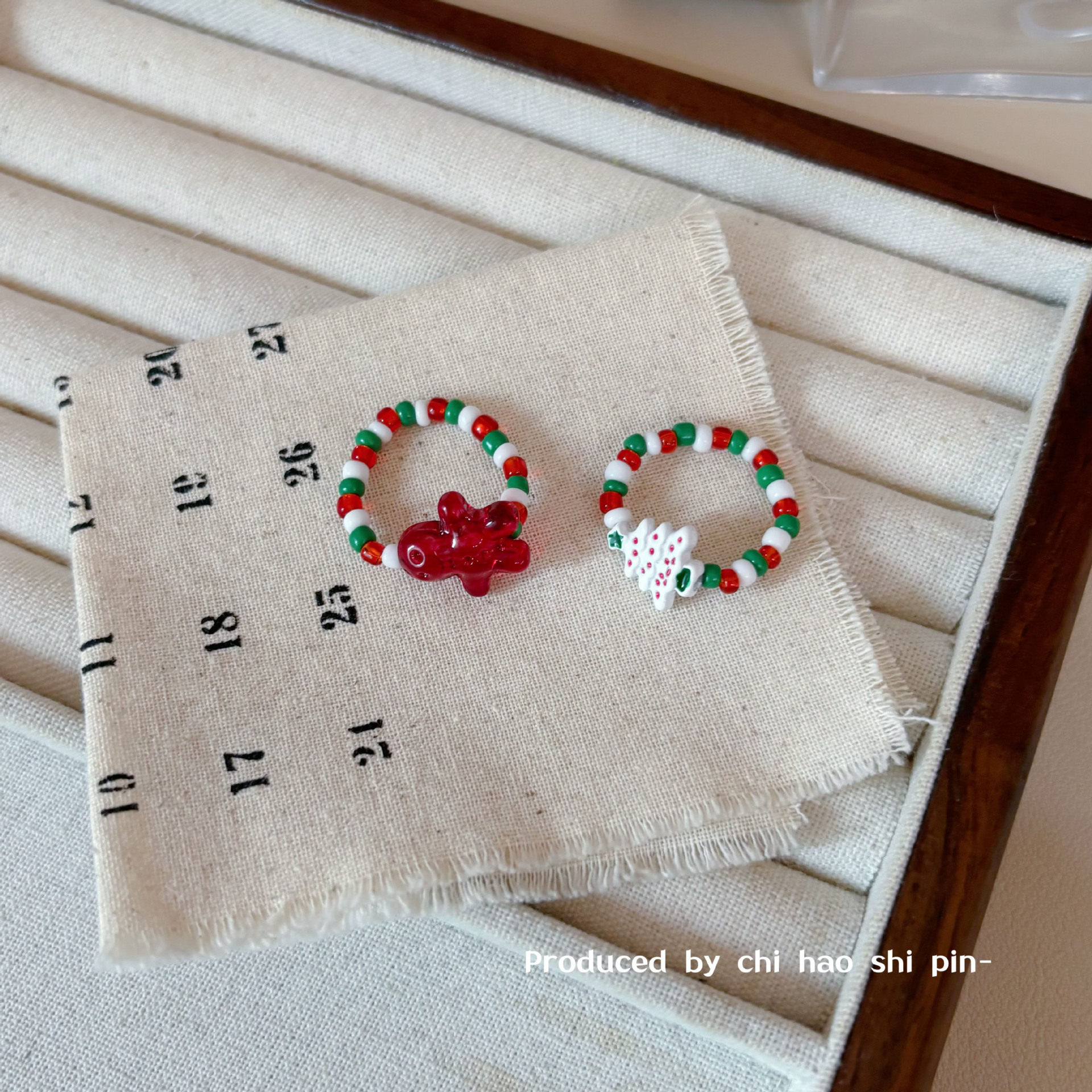 クリスマスを迎える姜パイ人クリスマスツリーカラービーズリング