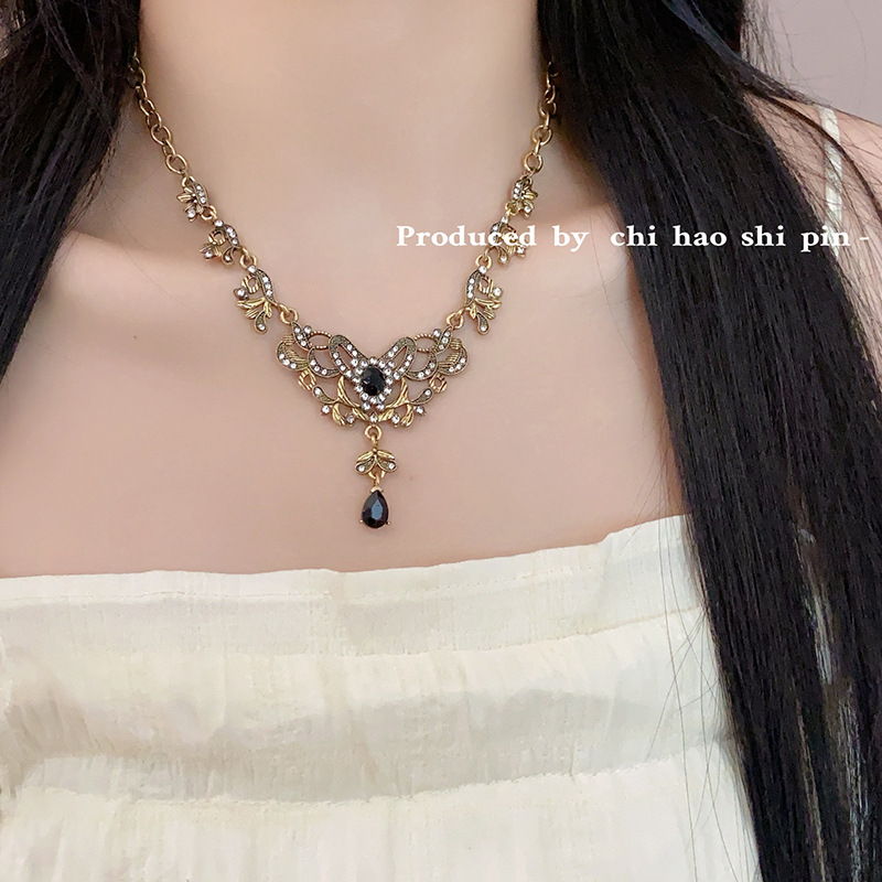 レトロ宮廷風ジルコン水滴ネックレス女性小衆軽豪華高颜値重工誇張鎖骨鎖2024新製品