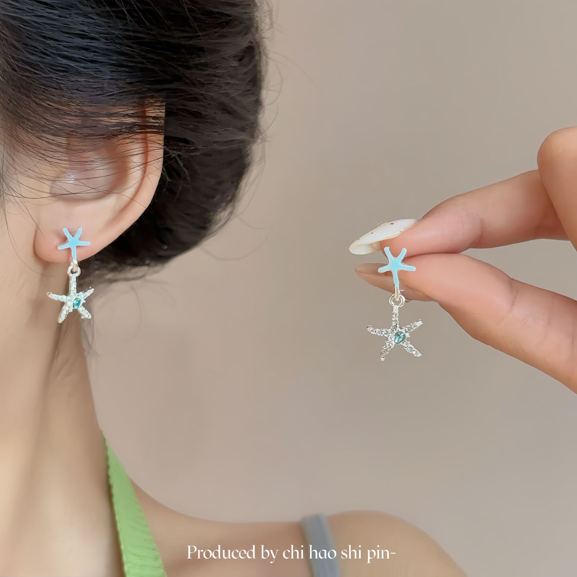 海洋の星 ~ 青いジルコン海星のピアスの女性の大衆の高級感の独特な精巧で甘いイヤリングのイヤリングのアクセサリー