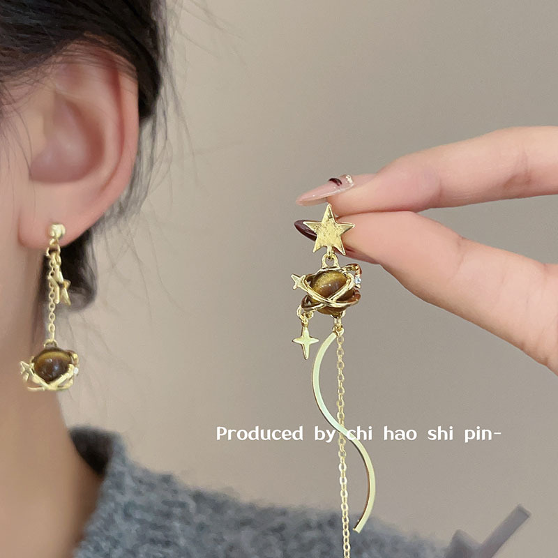 「水星記」小木星星星非対称流蘇ピアス小衆デザイン高級感復古百合耳飾り