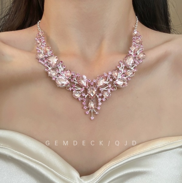 スーパーフラッシュピンクフラワーウォータードロップペンダントネックレスレトロ逃亡王女ライト高級ハイエンドディナーアクセサリー鎖骨チェーン