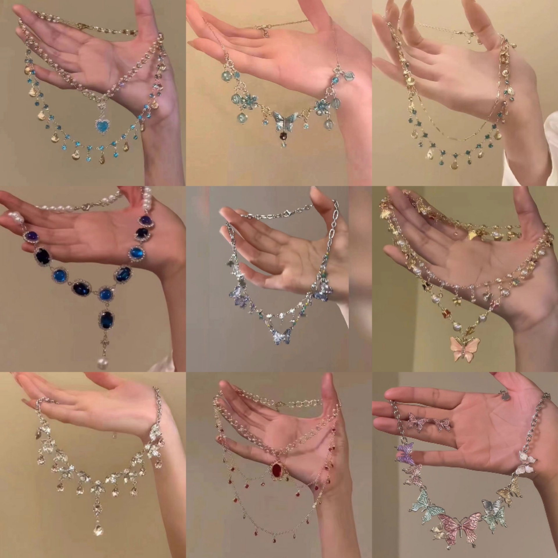 赤い本の同じタイプの蝶はタッセルのネックレスの女性をかぶって逃げています。