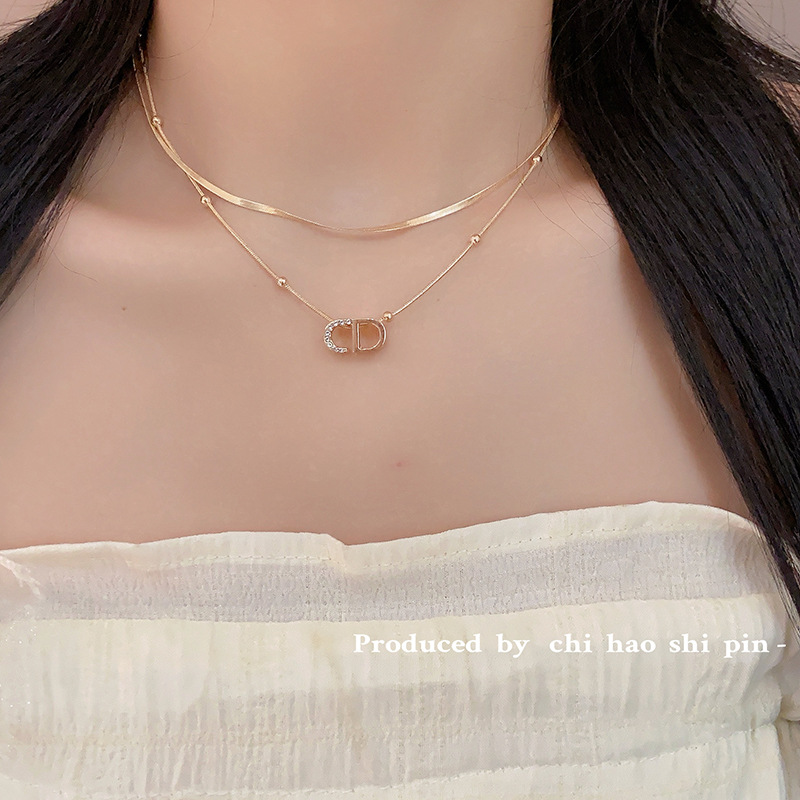 ファッションの軽い豪華なCDのアルファベットの二重のネックレスの女性の大衆のシンプルで高級感の気質の百合の鎖の骨の鎖の2024の新型