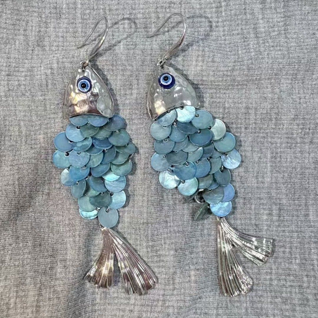 サマービーチレトロリゾートスタイル多層魚鱗パーソナライズイヤリングファッショナブルで多用途なトレンディなニッチデザインイヤリング