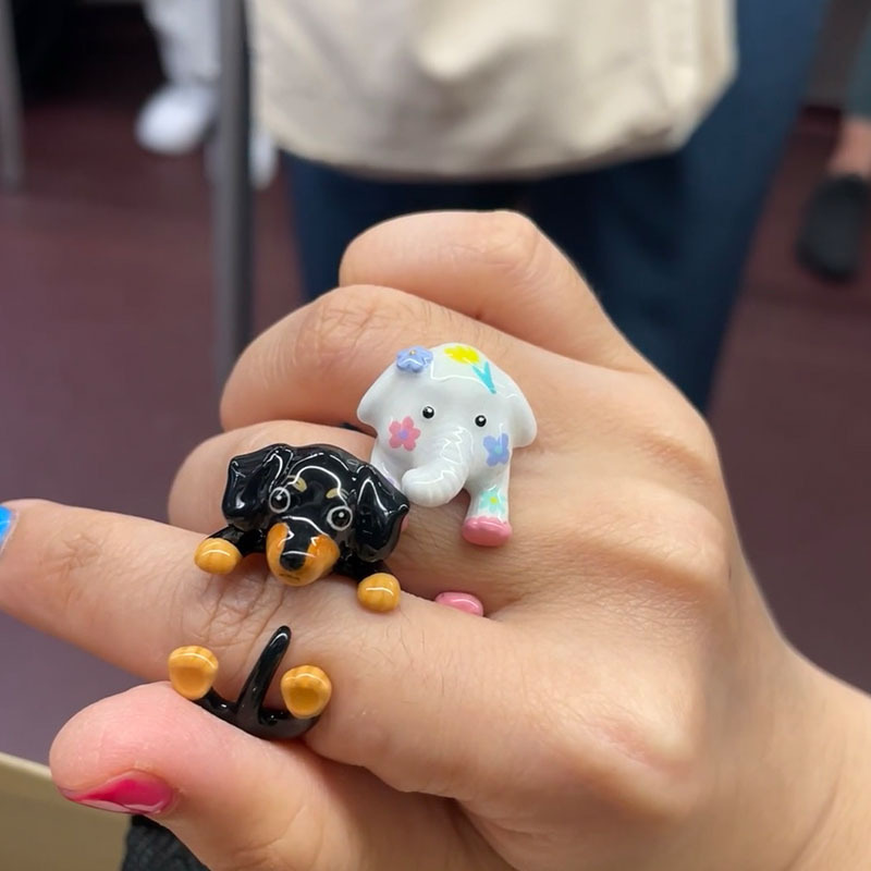 漫画の子供の趣味のソーセージの犬の指輪の大衆の設計の高級感の精巧な少女の心の小さい花の象の口の指輪の装飾品