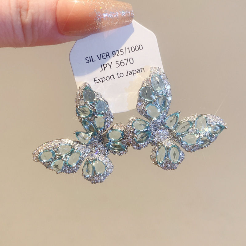 女性用の軽くて豪華で重厚な超光沢のあるフルダイヤモンドのバタフライイヤリング、超妖精の絶妙な気質のイヤリング、ファッショナブルで多用途でエレガントなイヤリング