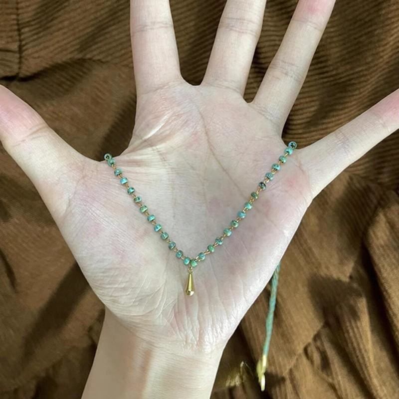 新中国式グリーンビーズ金色水滴ペンダントネックレスファッション気質百合高級感夏鎖骨鎖