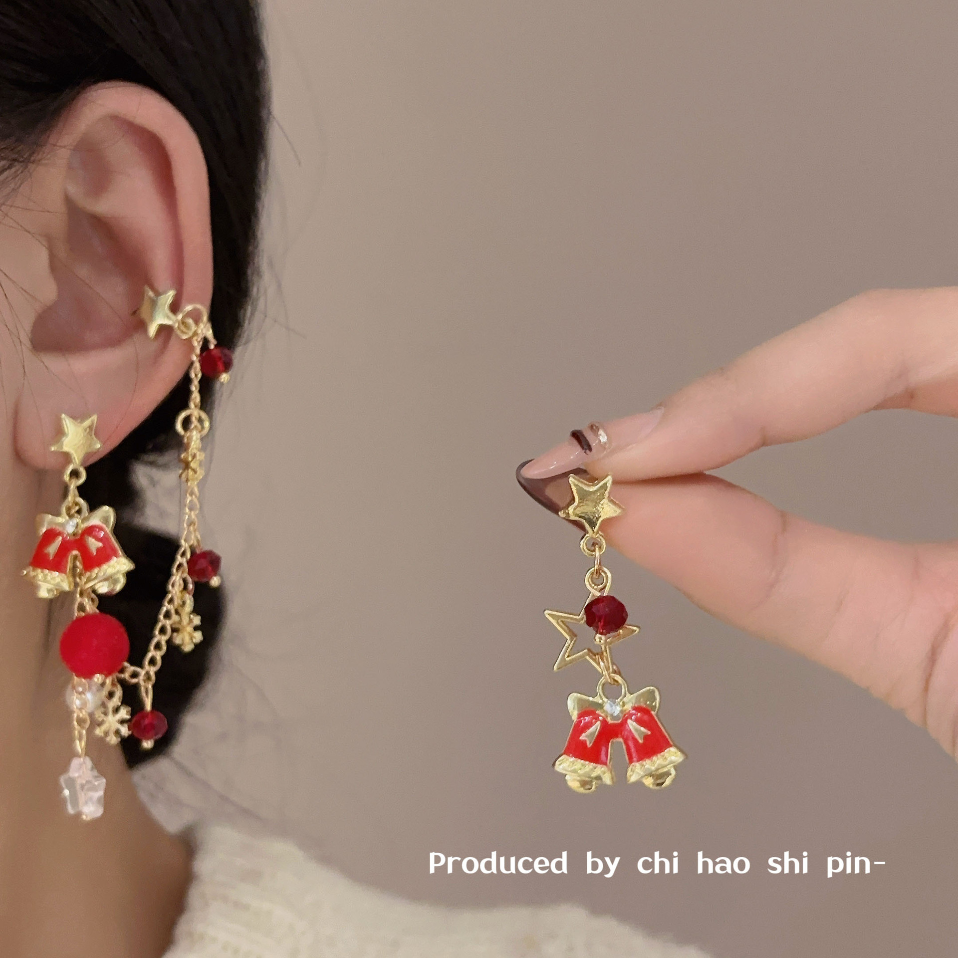 ベルが鳴ってクリスマスの雰囲気感になった赤いベルピアスの耳骨クリップの小さなデザインの高颜値耳飾り