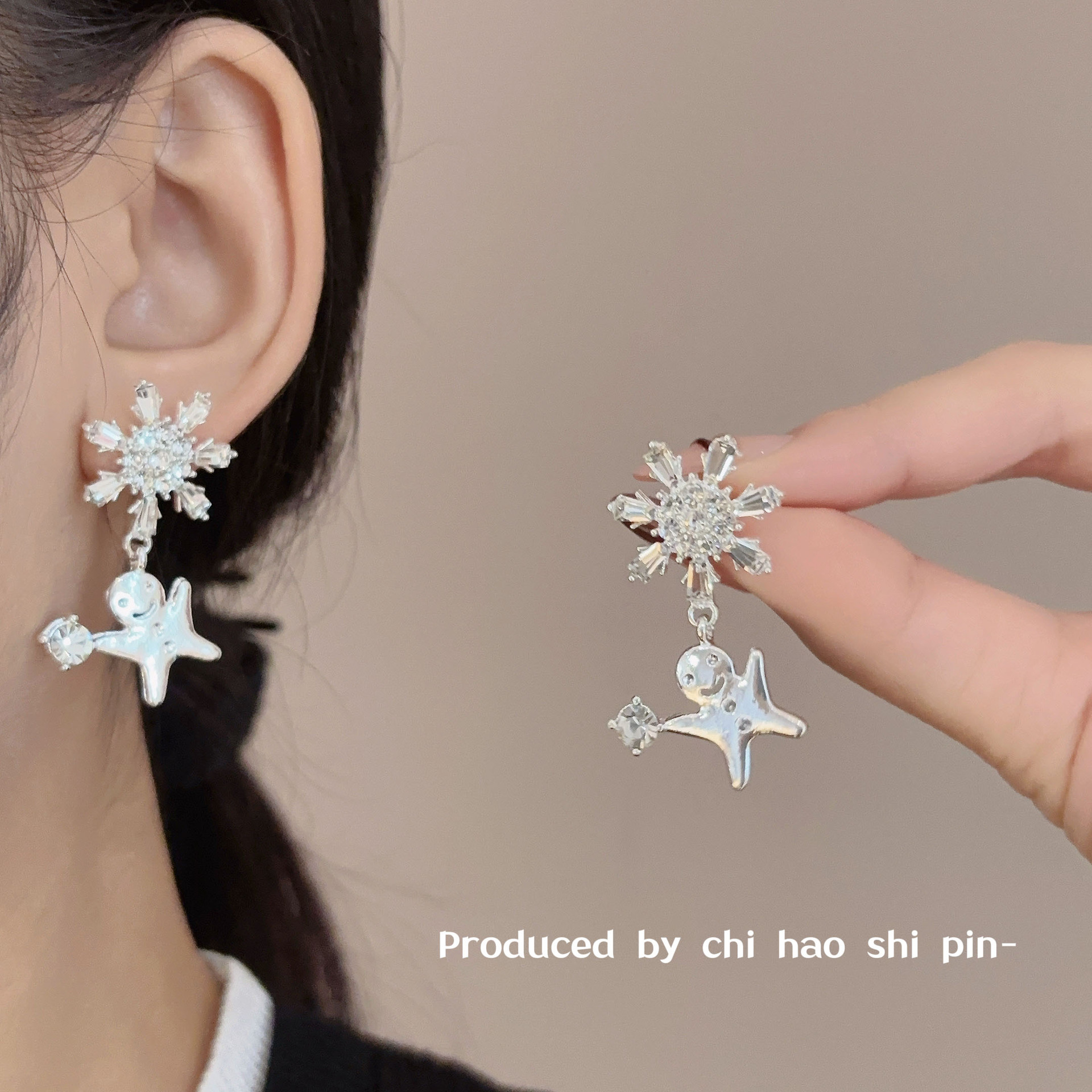 秋冬の雰囲気感が面白いです。クリスマスの雪花のジンジャーパイ人のイヤリングです。