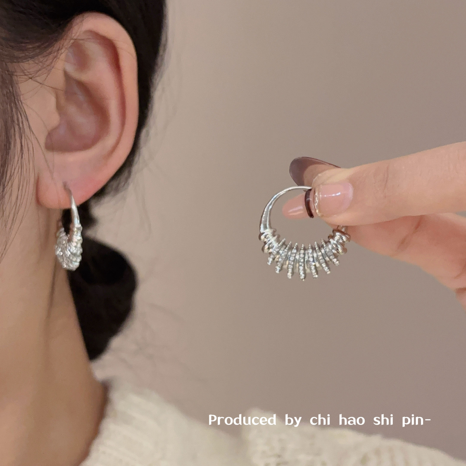 冷淡な風フラッシュドリル牛角包輪イヤリング女性大衆デザイン高級感気質百合耳飾り2024新製品