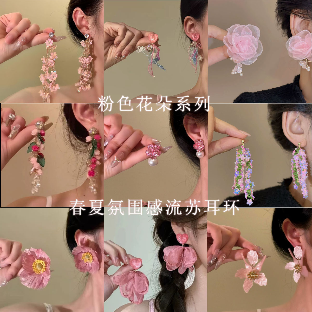 レトロなピンクの花水晶のタッセルのイヤリングは誇張して個性の高級感があります。