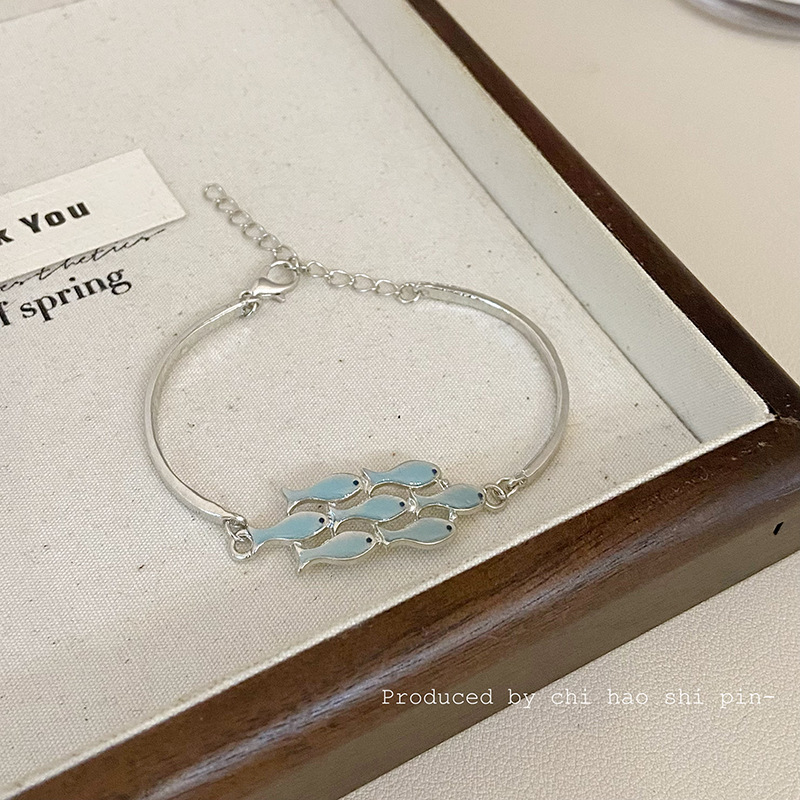 多くの魚の新しい中国式の復古の青い小魚の半分の腕輪はブレスレットの小さい大衆の軽豪華な高級感をつなぎ合わせます。