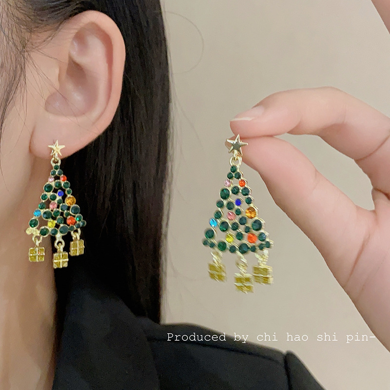 欧米のクロスボーダーのカラーはクリスマスツリーの星のイヤリングの女性の大衆を入れて軽くて豪華で高い顔の値の個性の創意の耳飾りを飾ります。