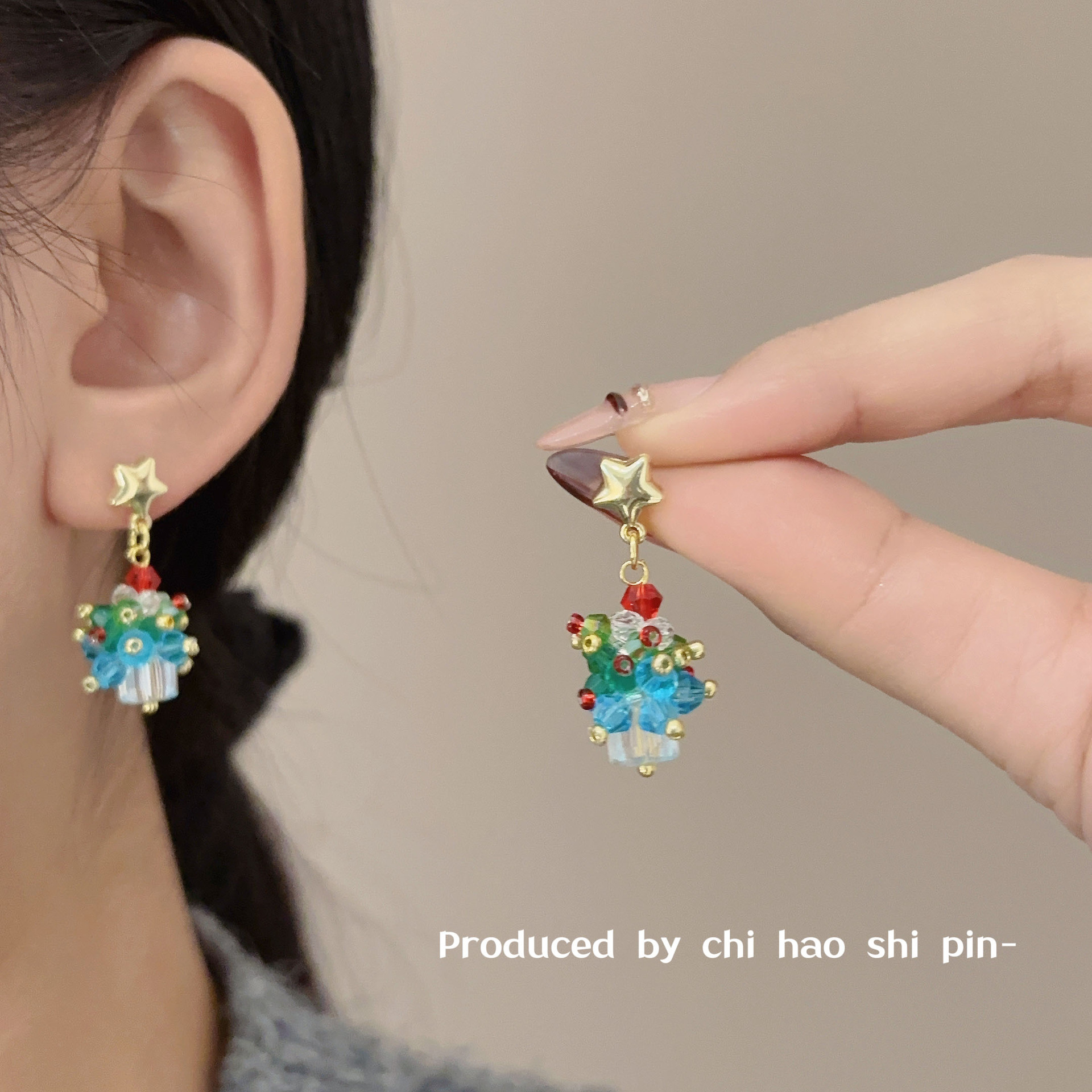 クリスマスの雰囲気感星クリスマスツリーのイヤリング