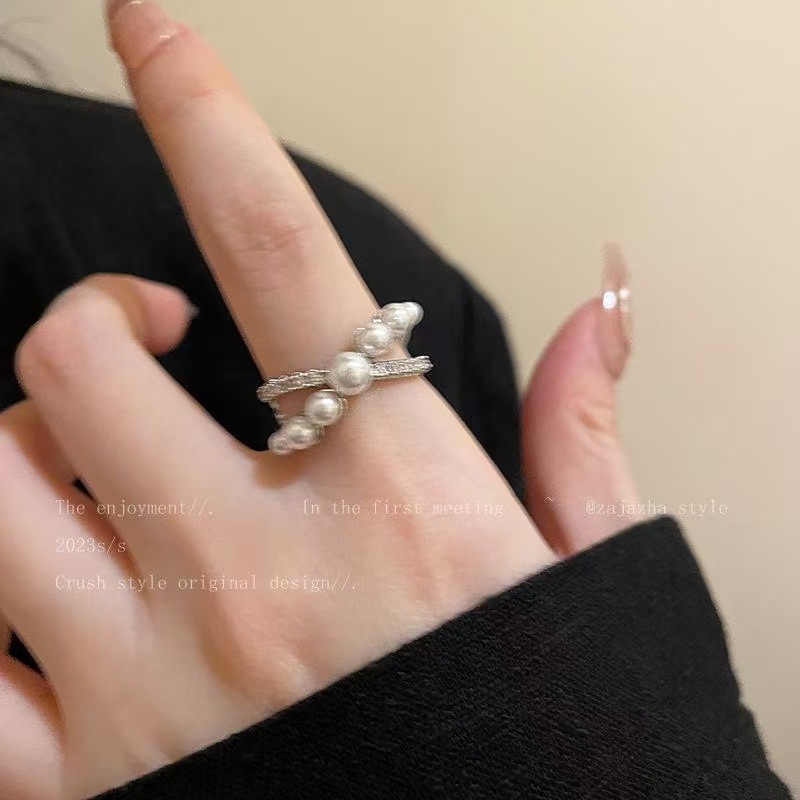 ニッチなデザインのアンチパールクロスオープン調節可能なリング、女性用、軽い豪華さ、多用途、ハイエンドリング
