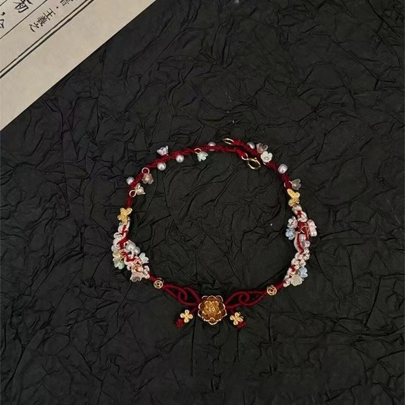 「歩歩生蓮」新中国式の金色の蓮の花は縄のブレスレットを編んでいます。