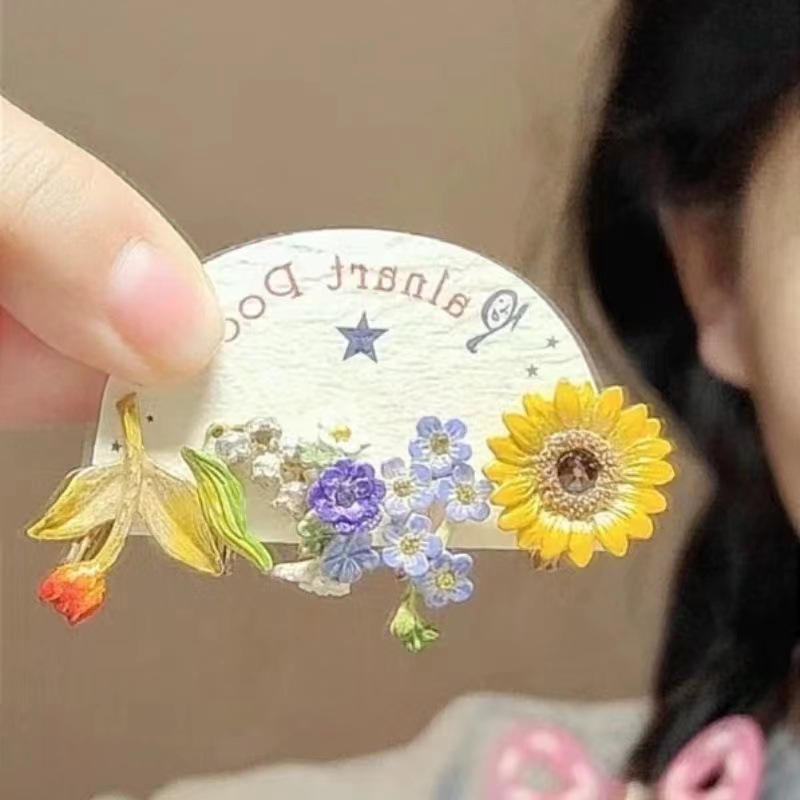 小紅書同項元気ヒマワリ花卉耳クリップ5点セット小衆気質清新で甘い蚊取り皿耳クリップ