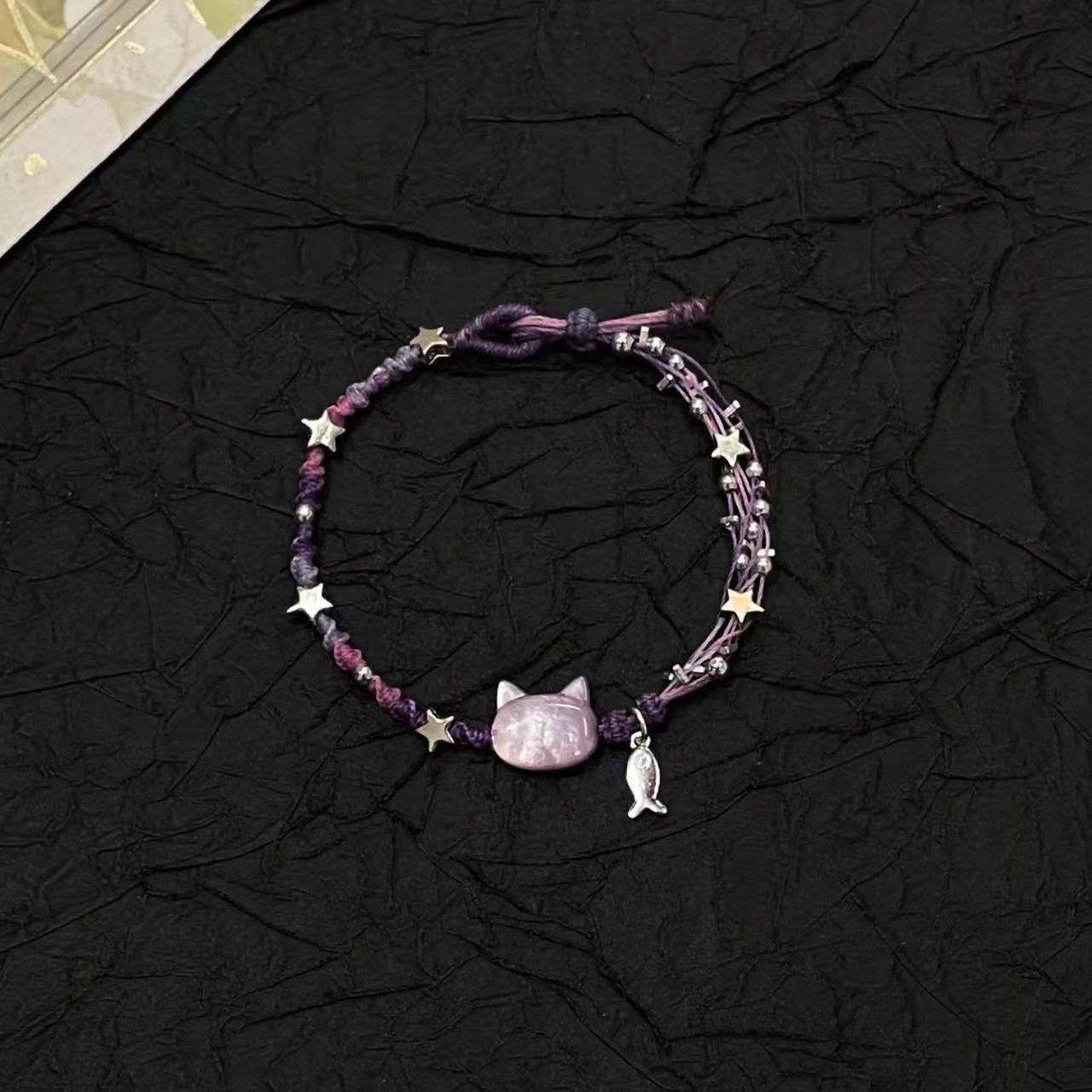 新しい中国風の紫色の星猫編みブレスレットニッチ高価値親友ギフトハイエンドのユニークなデザインのブレスレット