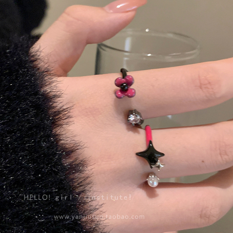 2024年の新型の甘いクールな風の花の星の芒の釉薬の開口の指輪の小さい設計の精巧で洗練された高級感の百合の指輪
