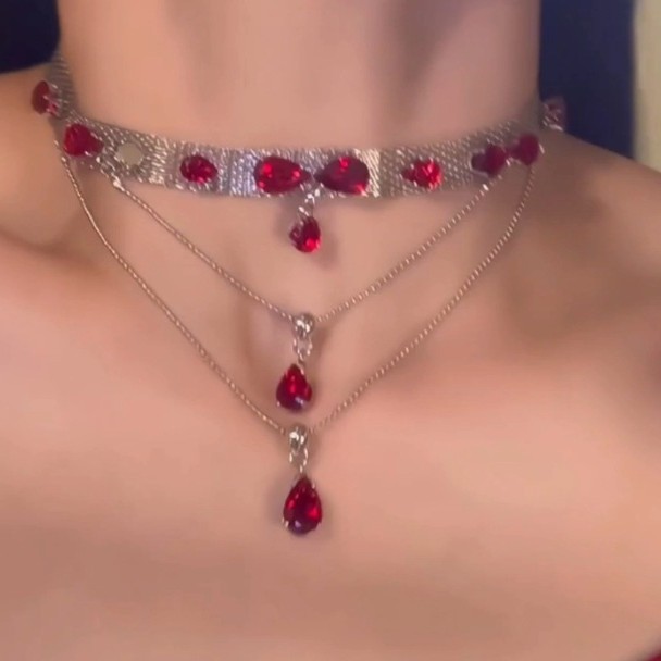 欧米の宮廷の首の鎖のアンコラの赤いジルコンのフリンジの鎖の小さい衆の重工は個性の気質の女性の首の鎖を設計します。