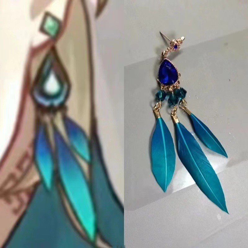 アニメ周辺二次元多用途フェザータッセルイヤリング女性用新しいライト高級ハイエンド非ピアスイヤークリップ