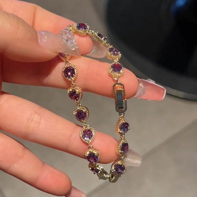 パープルフラッシュダイヤモンドブレスレットインライト高級ニッチ絶妙なハイエンド2025新しいドーパミンフェミニンハンドジュエリー