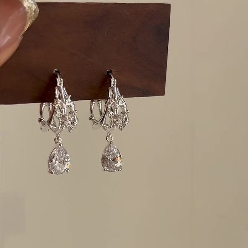 『戯夢パリ』清冷感レトロ竹節水滴ジルコン耳ボタン女性大衆デザイン高級透かし彫りイヤリング
