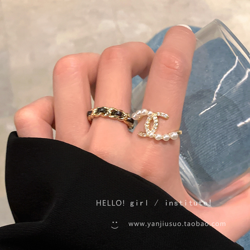 フランスの洗練されたシンプルなジルコン真珠の開口指輪ins小衆デザインの高級感食指リング