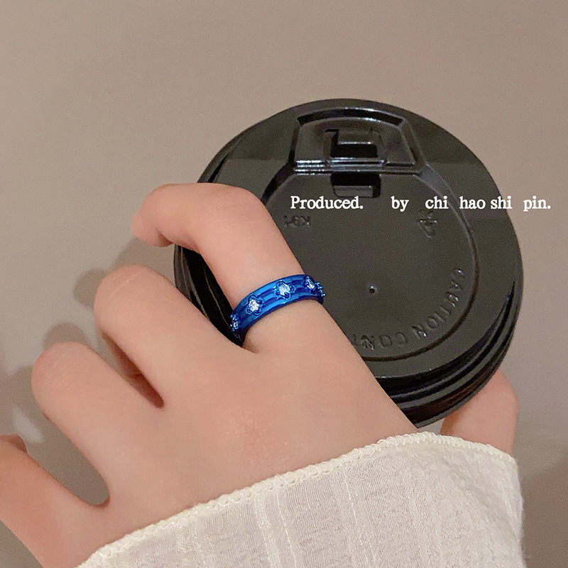 2023年の新型極めてシンプルな高級ブルー四葉草指輪の大衆デザイン感が洗練された風の個性的な女性の指輪アクセサリー