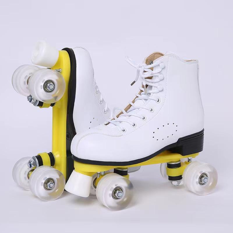 白いpu皮フラッシュホイール二列スケート靴模様スケートボード子供大人スケート靴スケート場