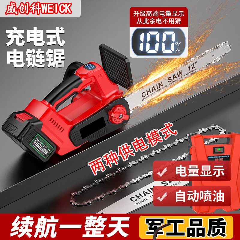 国境を越えた新しいブラシレスリチウム電池片手のこぎり充電式電気チェーンソー家庭用ハンドヘルドワイヤレス電気屋外伐採電気