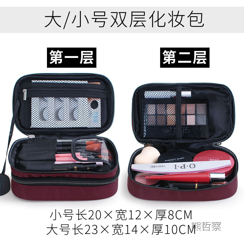 防水ナイロン布二重トランペット携帯化粧バッグ女性メイク直し収納バッグミニ出張旅行洗面バッグ男