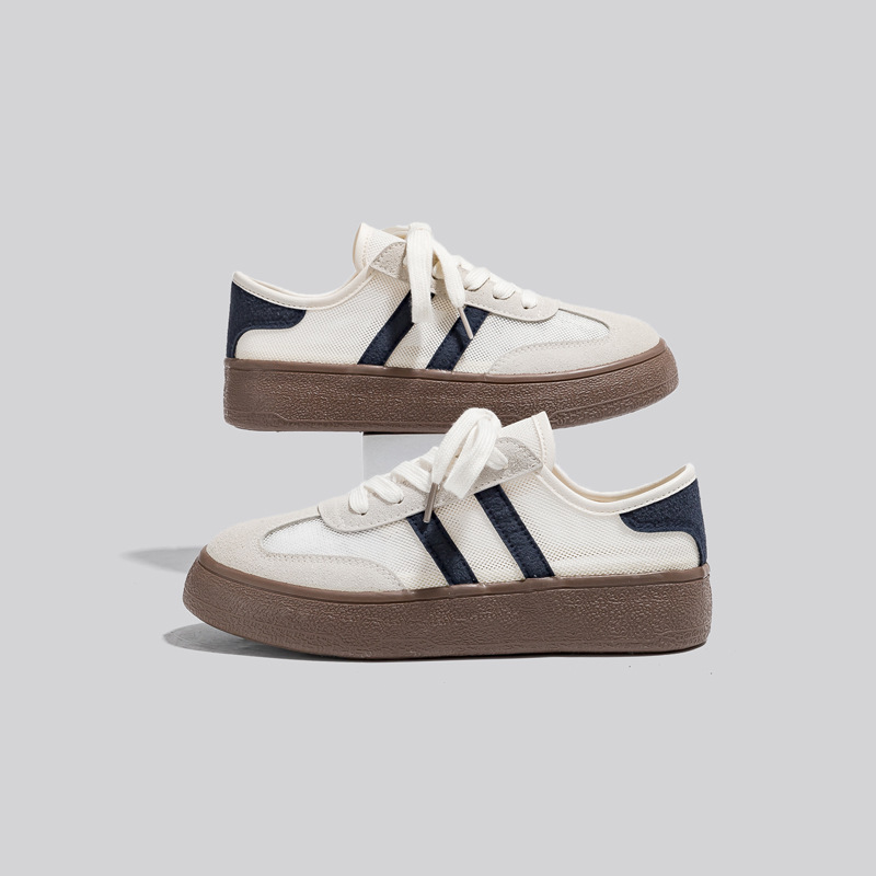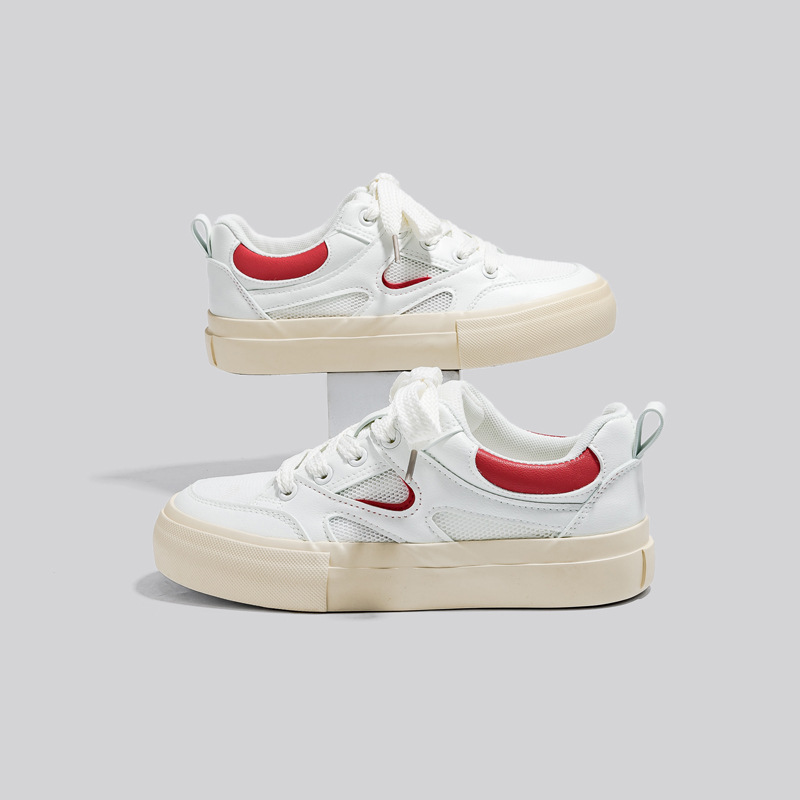 2023夏の新型通気ネットの厚い底の白い靴の女性の小さい大衆の羊の角の設計の板の靴のネットの靴の百合のファッションの靴